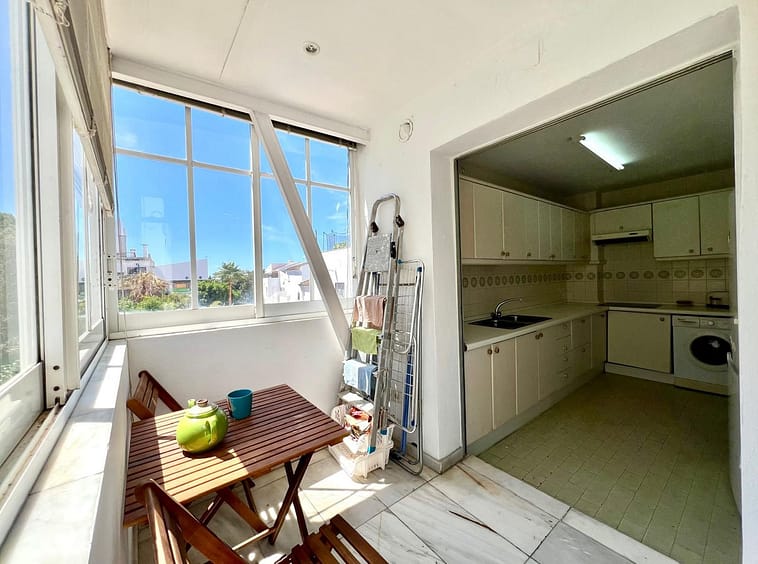 ELVIRIA. LOVELY APARTMENT WITH GREAT POTENTIAL SITUATED ON THE TOP FLOOR IN THE CENTRAL URBANIZATION OF PARQUE ELVIRIA. THE APARTMENT IS 105 m2 INCLUDING TERRACES. THE APARTMENT HAS 3 BEDROOMS AND 2 BATHROOMS. OPEN LIVING ROOM WITH FIREPLACE WHICH LEADS TO AN OPEN SKY TERRACE AND HAS THE POSSIBILITY TO ACCESS TO A SOLARIUM. THE BRIGHT KITCHEN HAS AN EXTENSION TO A COVERED TERRACE. THERE IS A 7M2 STORAGE ROOM ON THE GROUNDFLOOR. NO LIFT.