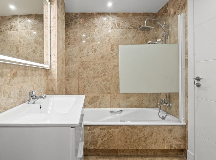 Communal pool with children’s area, air conditioning (hot & cold), covered terrace, lift, fitted wardrobes, private terrace, high-speed WiFi, marble floors, double glazing, and entry phone security.
