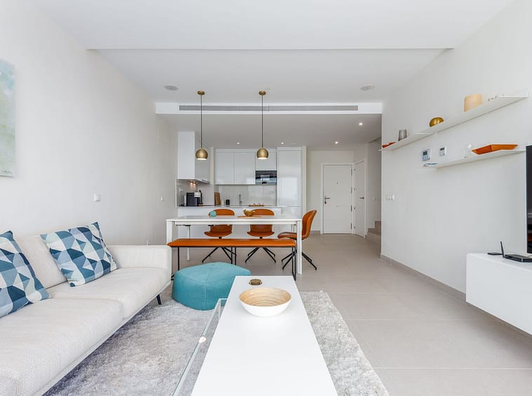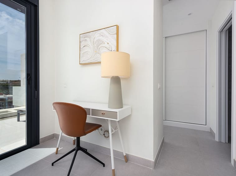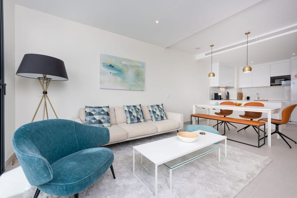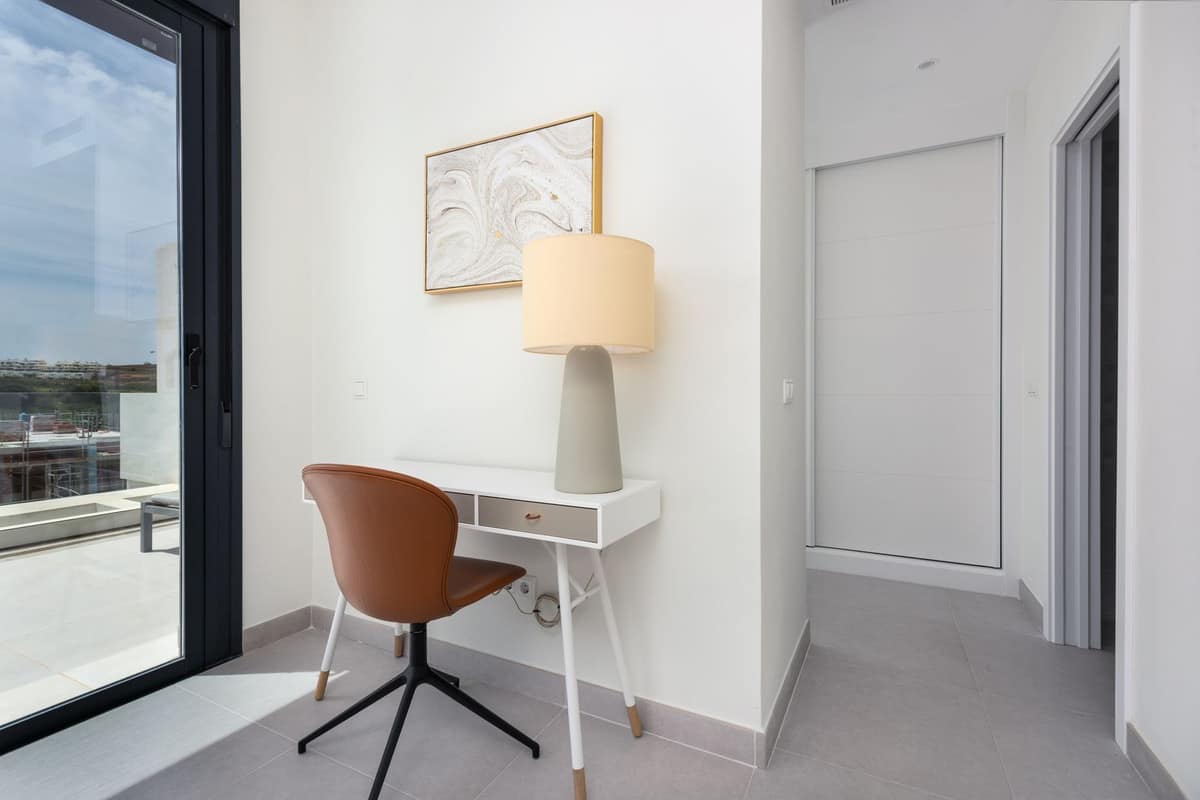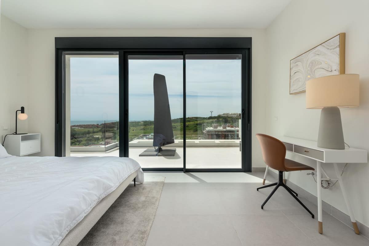 Designed for comfort and modern living, this elegant home features three spacious bedrooms and two contemporary bathrooms, including a master suite with a private terrace and en-suite bathroom. The open-plan kitchen and bright living area flow seamlessly onto two generous terraces, where you can relax and take in panoramic views of the golf course, the Mediterranean Sea, and the surrounding mountains.