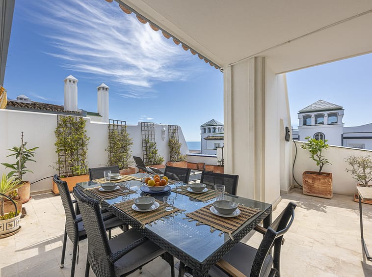 Located in the prestigious Dominion Beach area of Estepona East, this luxurious duplex penthouse offers a combination of elegant living and unbeatable convenience. Situated along the renowned New Golden Mile, the property enjoys a prime location, with direct access to the beach through beautifully landscaped communal gardens. Estepona Centre is just a short drive away, and the property benefits from excellent road connections, including the A-7 coast road, ensuring easy access to Marbella, Puerto Banús, and beyond. The area is well-served by international schools, making it a perfect location for families, while nearby golf courses, sports facilities, and supermarkets cater to various needs.