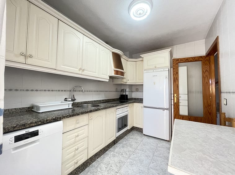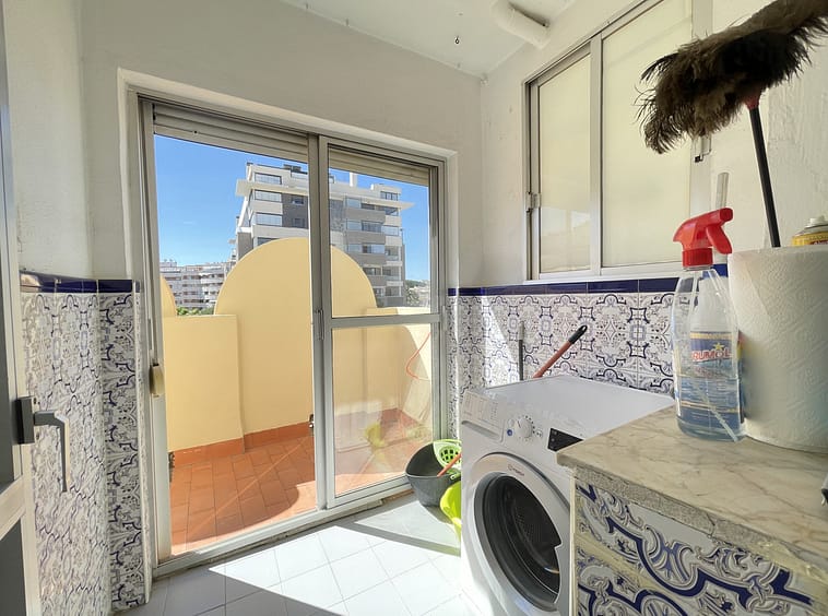 The duplex has three large bedrooms with fitted wardrobes and two full bathrooms. The kitchen is fully equipped and offers a separate laundry area. The property includes air conditioning for year-round comfort and has a large open terrace with urban and pool views, perfect for enjoying the Mediterranean climate.