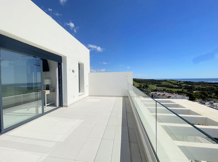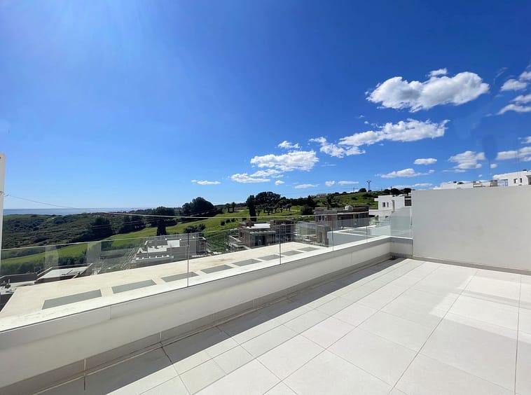 This spectacular duplex penthouse, located in an exclusive frontline golf development in Estepona, boasts a privileged south-facing orientation, ensuring abundant natural light throughout the day and breathtaking panoramic views of the sea and golf course from every room in the home.Just 5 minutes from the exclusive Alcazaba Lagoon and close to the new Estepona hospital, restaurants, supermarkets, and schools, this property offers a very convenient and well-connected location.On the main floor, the property features a modern, fully equipped kitchen that seamlessly integrates with the spacious living room, which opens directly onto a private terrace—perfect for enjoying the stunning surroundings. This level also includes two large bedrooms with built-in wardrobes, a full bathroom with double sinks and a walk-in shower, and a small laundry area.Upstairs, you’ll find the spacious master bedroom, complete with a walk-in wardrobe, en-suite bathroom with walk-in shower, and access to a private terrace with sea views—ideal for relaxing in complete privacy.