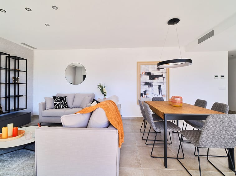 The property stands out for its functional and bright layout, with spacious rooms and cross ventilation that provides natural freshness throughout the year. The living-dining room connects directly to a pleasant 21 m² terrace, perfect for enjoying the Mediterranean climate, al fresco dining, or relaxing moments with open views of the landscaped surroundings.