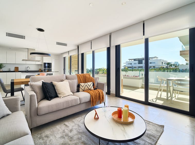 Elegant 3-bedroom, 2-bathroom apartment located on the first floor within an exclusive private residential complex in the Atalaya area, in the golden triangle of Marbella – Estepona – Benahavís.