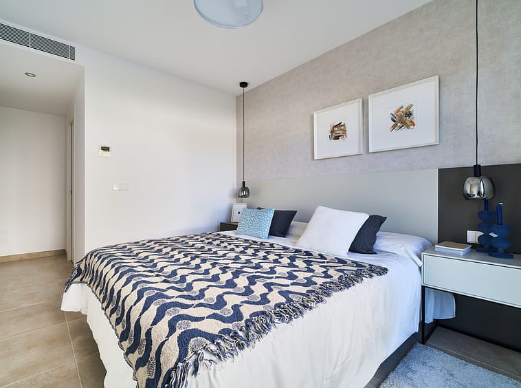 The bedrooms offer excellent storage capacity thanks to lacquered built-in wardrobes with fully finished interiors.