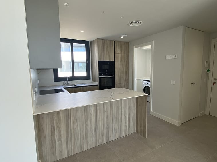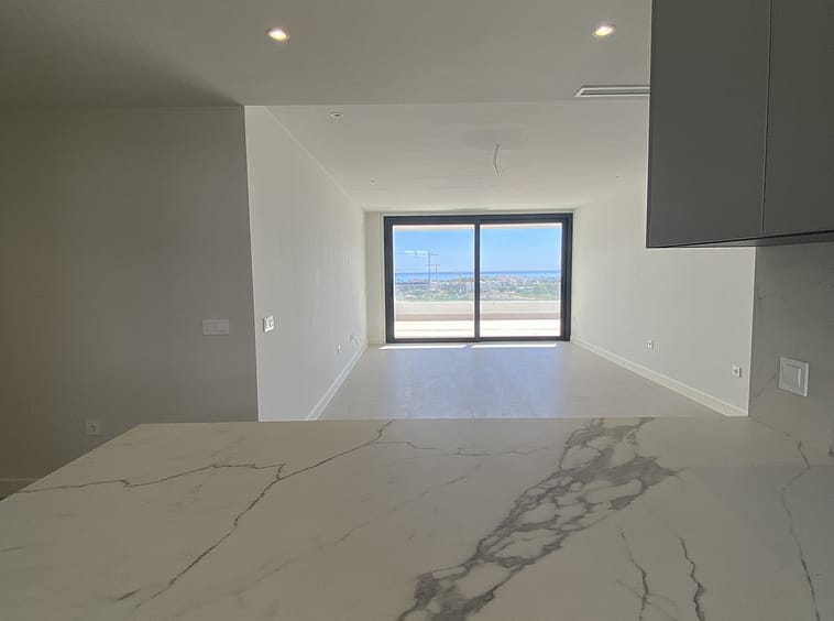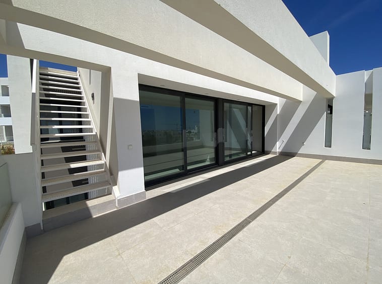 The home features three bright bedrooms and two elegant bathrooms. The open-plan living and dining area is filled with natural light, flowing seamlessly to a spacious private terrace. A true highlight is the massive rooftop solarium with panoramic sea views, also overlooking Azata’s 18-hole golf course — an exceptional setting for entertaining, dining al fresco, or simply enjoying long summer evenings.