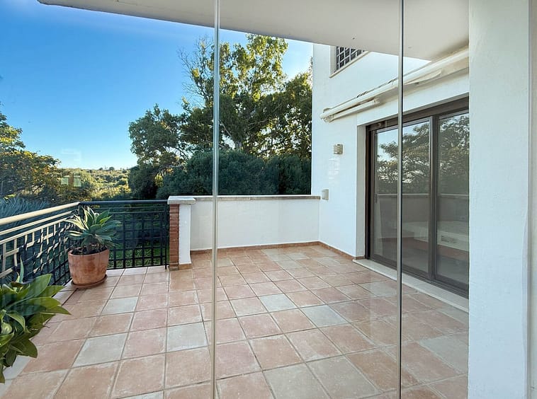 The property features a spacious terrace facing the morning sun, offering open views of the sea, the swimming pool, and the surrounding tropical gardens. Part of the terrace is fitted with removable glass panels, allowing you to enjoy the space open in summer or enclosed during winter—perfect for year-round use.