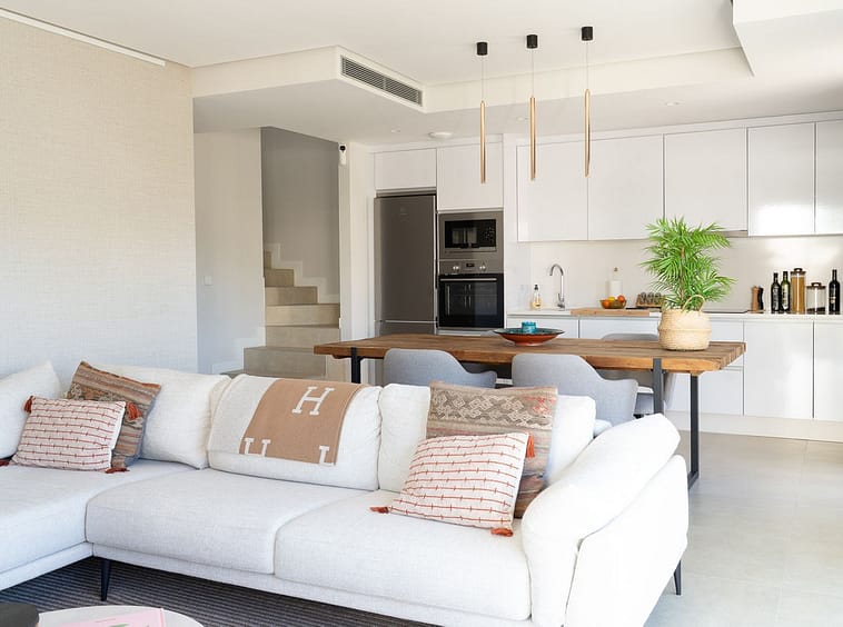 The open living area with modern kitchen is perfect for relaxing and entertaining. Sold fully furnished with premium-quality furniture, the apartment is completely move-in ready. It features 3 spacious bedrooms with built-in wardrobes, 3 bathrooms, 2 terraces, a luxurious infinity pool, 2 private parking spaces, and a storage room.