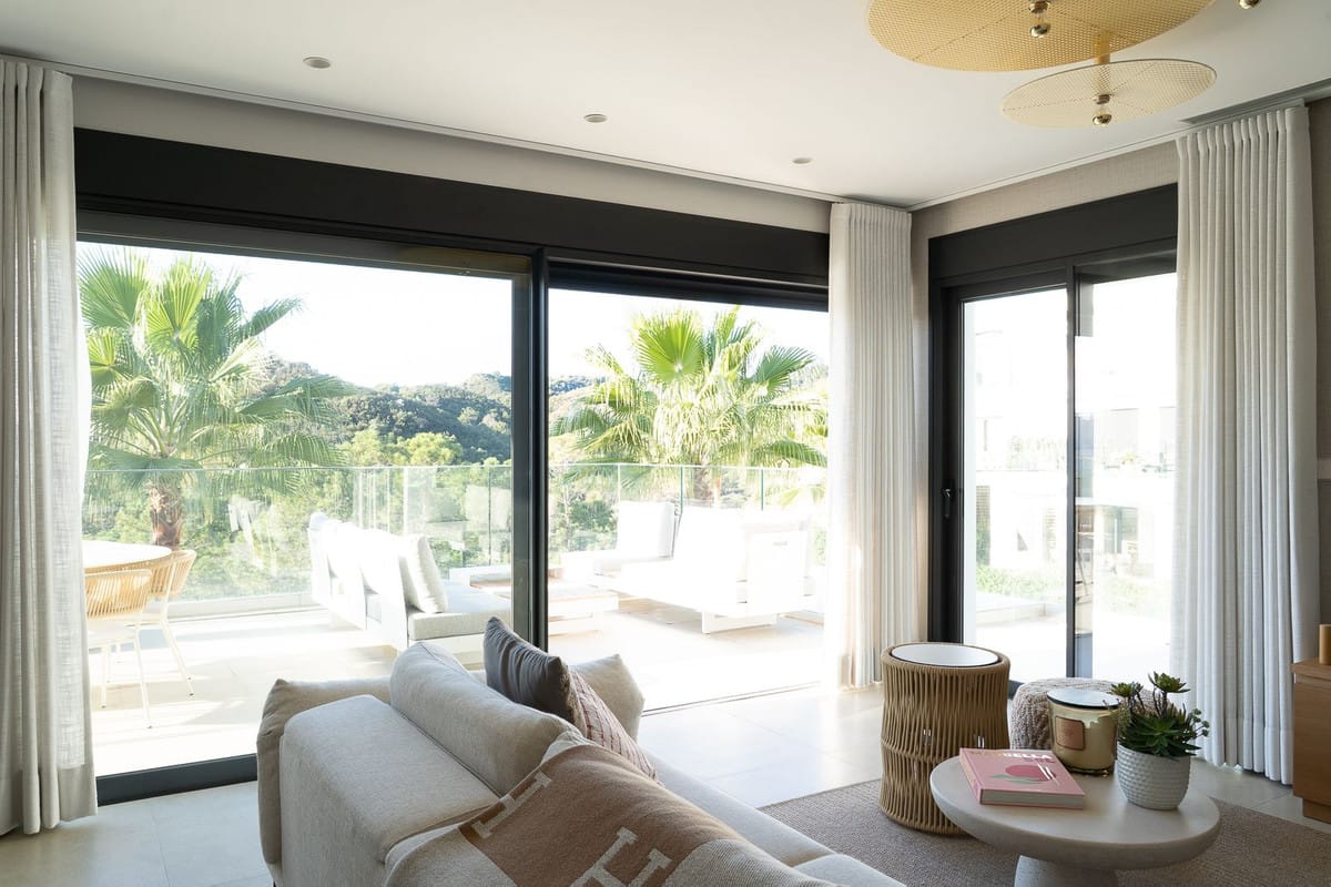 This stunning apartment combines space, tranquility, and high-end comfort in a green, quiet setting. The open-plan layout with large windows provides breathtaking panoramic views of nature and landscape.