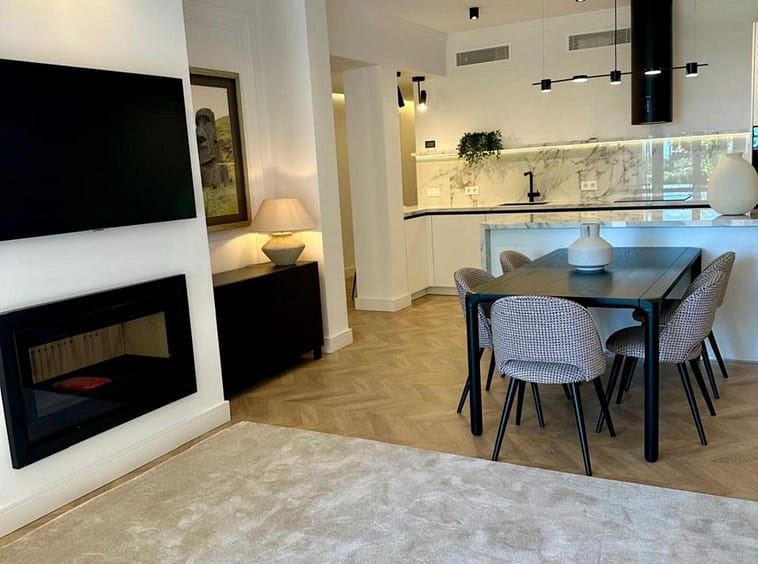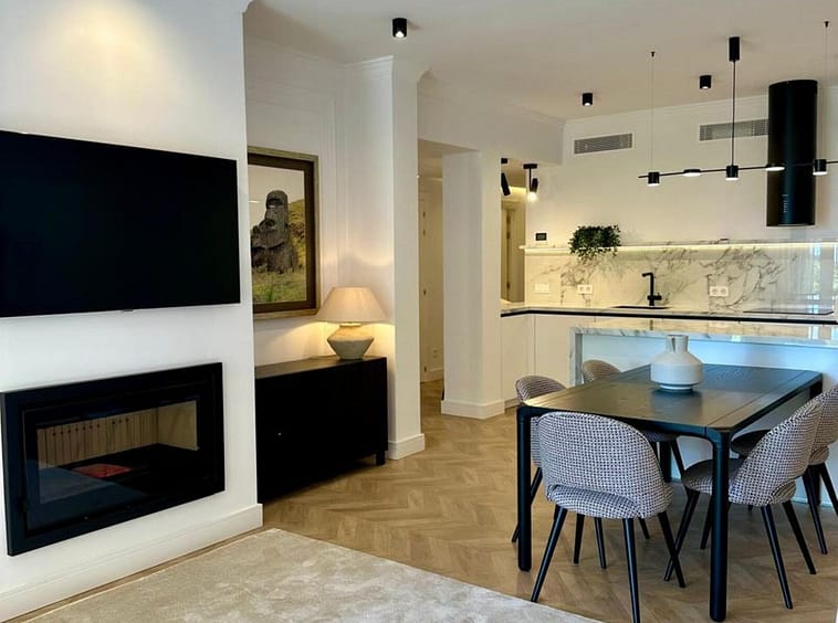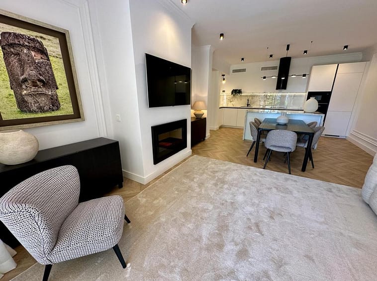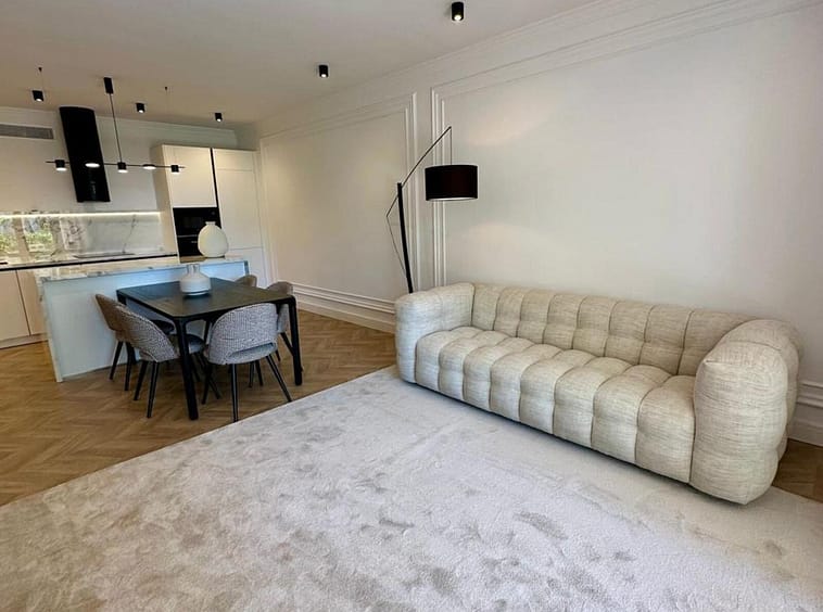 The apartment has been recently renovated and is decorated in a modern style using high-quality materials and stylish design solutions.