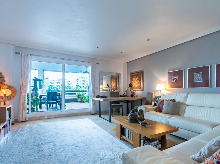 Set in a secure gated community between Puerto Banús and Estepona town, this spacious three-bedroom apartment offers the perfect blend of comfort, style, and coastal convenience. The apartment features a generous open-plan living space that connects effortlessly to three private terraces, ideal for relaxing or entertaining with views over the beautifully maintained gardens and the communal pool. The brand-new fully fitted kitchen comes with a separate utility room — stylish and practical in equal measure. The property includes two underground parking spaces and a private storage room, and is just steps from the brand-new paddle club and a 10-minute walk to the beach — ideal for an active, outdoor lifestyle. Inside, the apartment is finished to a high standard with marble floors, hot and cold air conditioning, fitted wardrobes, and fast fiber-optic internet. The gated community also offers excellent shared facilities including a gym and sauna, adding to its year-round appeal. Surrounded by golf courses, close to international schools, and with easy access to transport links, this home delivers both tranquillity and convenience. With beautiful sea and mountain views, and in immaculate condition throughout, this is a smart choice whether you’re looking for a permanent home or a stylish lock-up-and-leave retreat on the Costa del Sol.