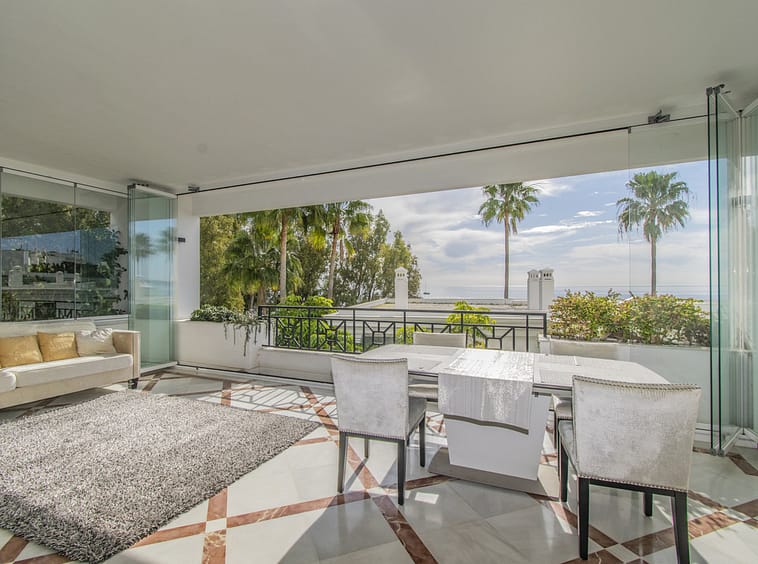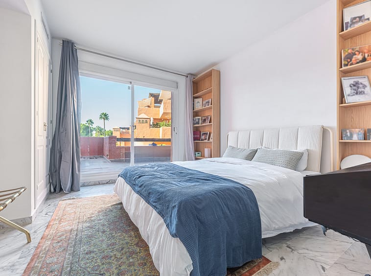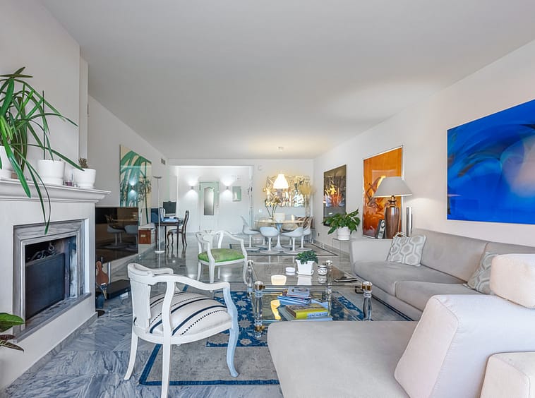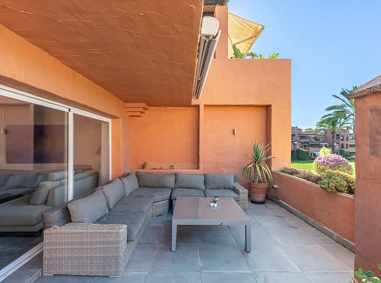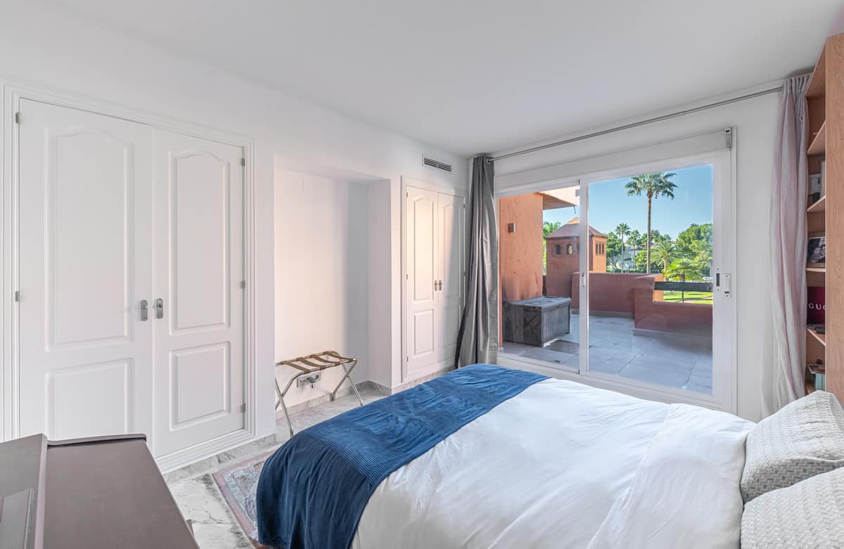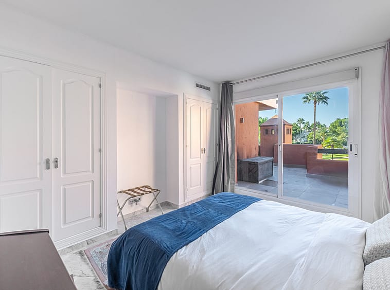 This fabulous apartment is located in one of the best and most exclusive developments in Guadalmina Baja. It faces south with views of the lush tropical communal gardens and the oversized pool area that resembles a beach.