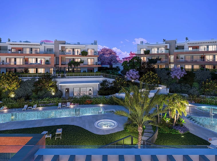 New project of luxury 2 and 3 bedroom apartments and penthouses in the last plot in prestigious Atalaya, on the junction of the golden triangle Marbella – Benahavis – Estepona, in a gated exclusive community full of amenities with gym, heated pool and jacuzzis, lush gardens and yoga lake, in walking distance to facilities and within a short drive to the beach, Puerto Banús and Marbella.