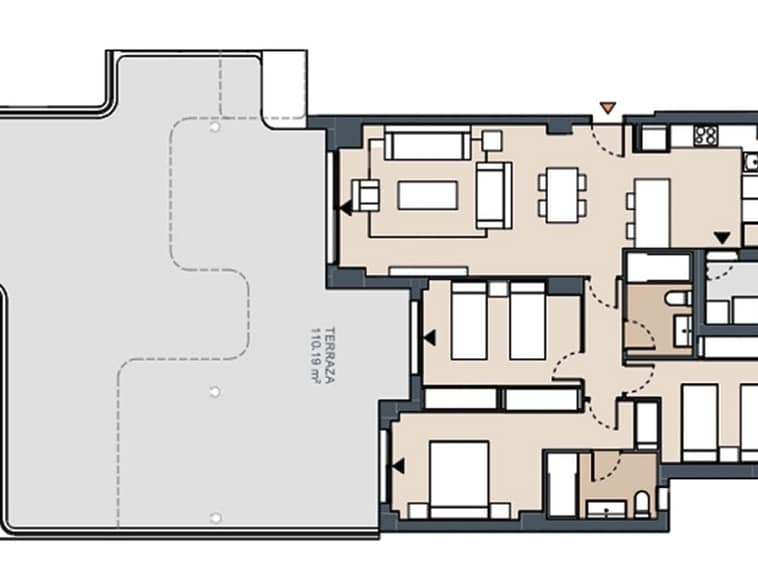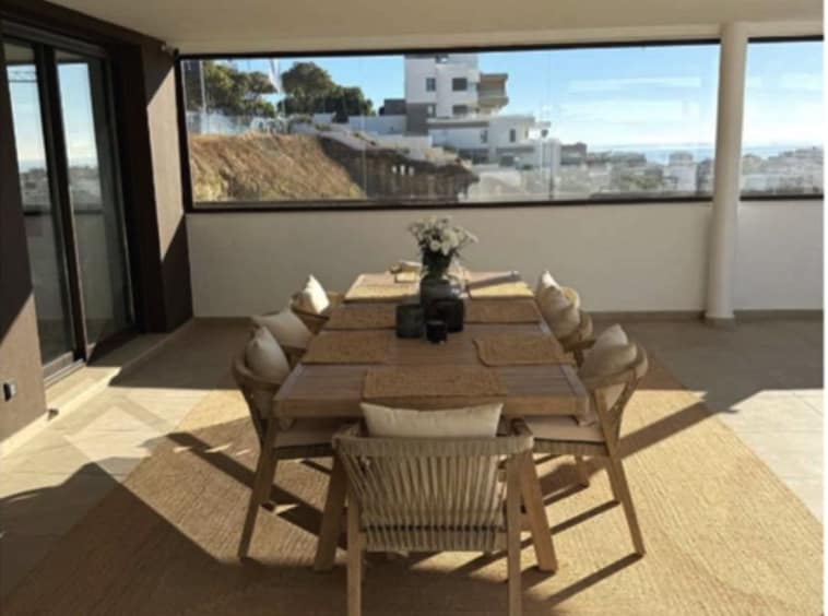 Ready to move in with utilities (water, electricity, internet) already connected, this property is an ideal primary residence, holiday home, or investment. The open-plan layout seamlessly integrates a spacious living area and kitchen, with large sliding glass windows flooding the space with natural light and leading to the standout feature: an impressive 115 m² terrace that serves as an outdoor living room for much of the year. Partially covered and with one side glazed for wind protection and privacy, it's perfect for al fresco dining, lounging, or relaxation, even on warmer or breezier days. Enjoy unobstructed panoramic views of the Mediterranean Sea, nearby park, and modern architecture of Las Mesas, with minimal overlooking from neighbouring buildings.