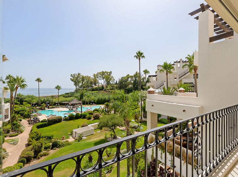 Positioned between Marbella and Estepona, Bahía del Velerín is a prestigious beachfront gated community renowned for its lush tropical gardens, expansive lagoon-style swimming pool with snack bar, 24 / 7 security, and direct access to one of the region’s finest beaches.