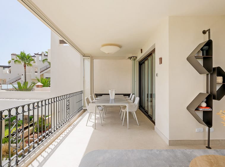 Bahía del Velerín 3.5 is a turnkey luxury apartment in a prime beachfront setting, refurbished to exceptional standards and ready for immediate occupation or rental. With 3 bedrooms, 2 bathrooms, 120 m² of elegant interior space and a 38 m² terrace overlooking lush gardens and the Mediterranean Sea, this home represents an outstanding opportunity.