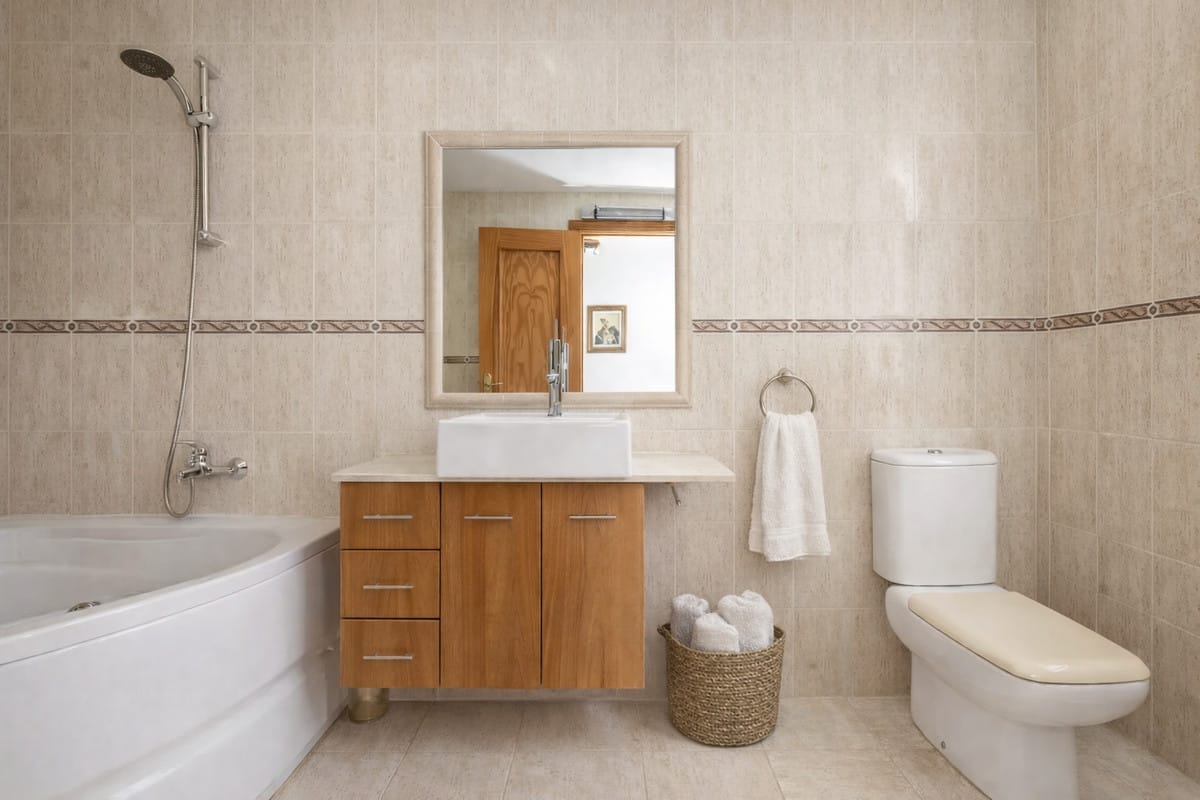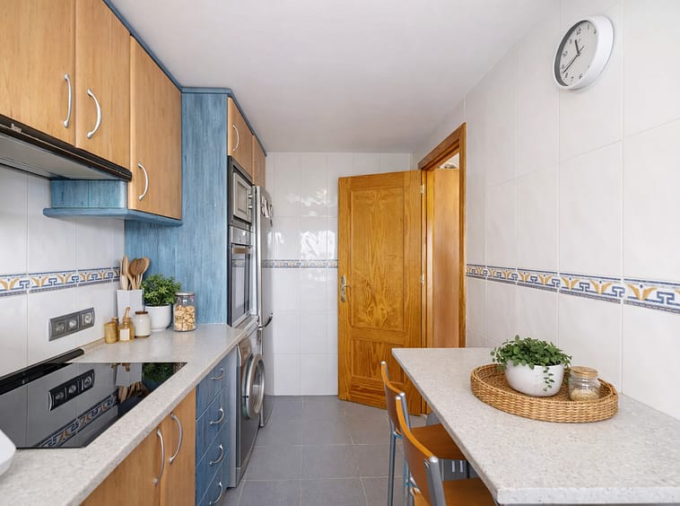 On the main floor, you will find a bright and spacious living room with direct access to a private terrace, the perfect place to enjoy the sunshine, have breakfast outdoors or relax in the evening. The kitchen is practical and functional, ideal for everyday use.