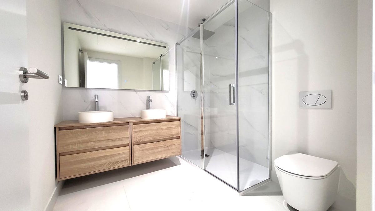 Master bedroom with ensuite bathroom and direct access to the terrace. Air conditioning hot and cold, video intercom, domotic system, built-in wardrobes in all bedrooms, under floor heating in bathrooms, pre-installation alarm system. Includes two parking spaces and one storage room.