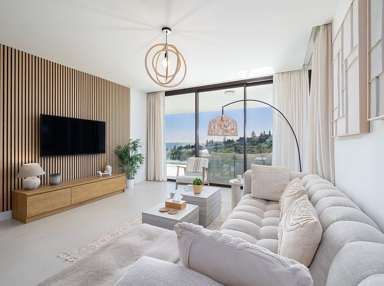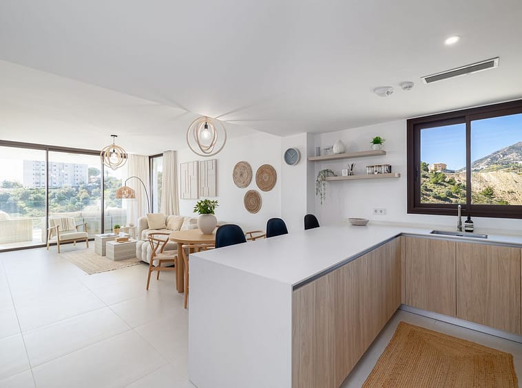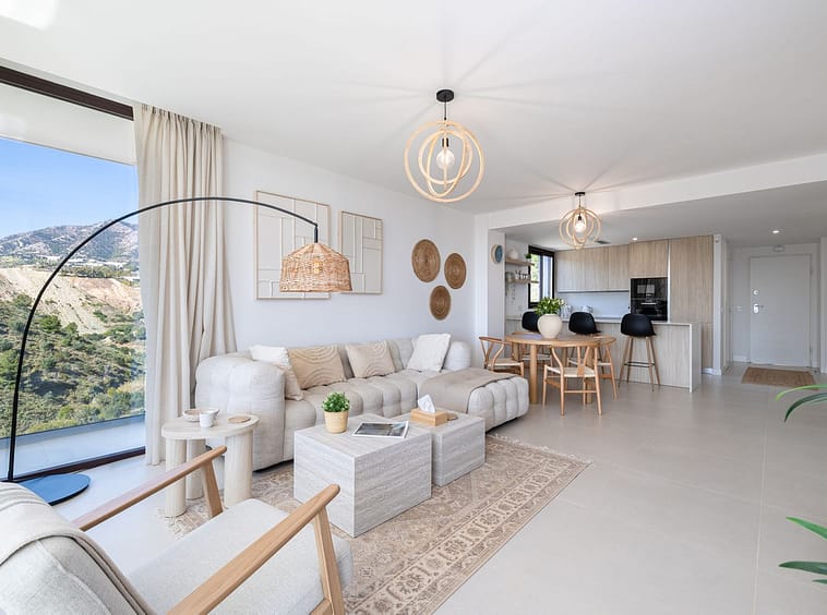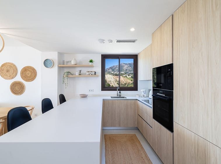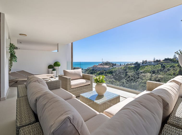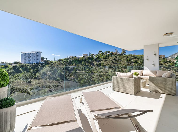 Finding the perfect balance between coastal serenity and modern luxury is effortless in this stunning corner residence, located in the highly sought-after lower enclave of El Higueron. This exceptionally spacious and luminous home is designed to invite the Mediterranean light into every corner, offering a seamless flow that leads toward a massive private terrace. From this expansive outdoor sanctuary, you can enjoy breathtaking panoramas that sweep from the rugged mountain peaks to the sparkling sea, with more than enough room for a full lounge set, sun loungers, and a premium grilling area for sunset dinners.