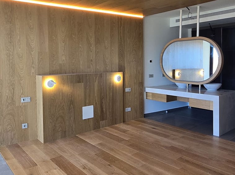 Underfloor heating is throughout the apartment including under the wooden parquet, Aerothermal system, Alarm Home automation Domotica, Electric vehicle charger is pre-installed in the garage.