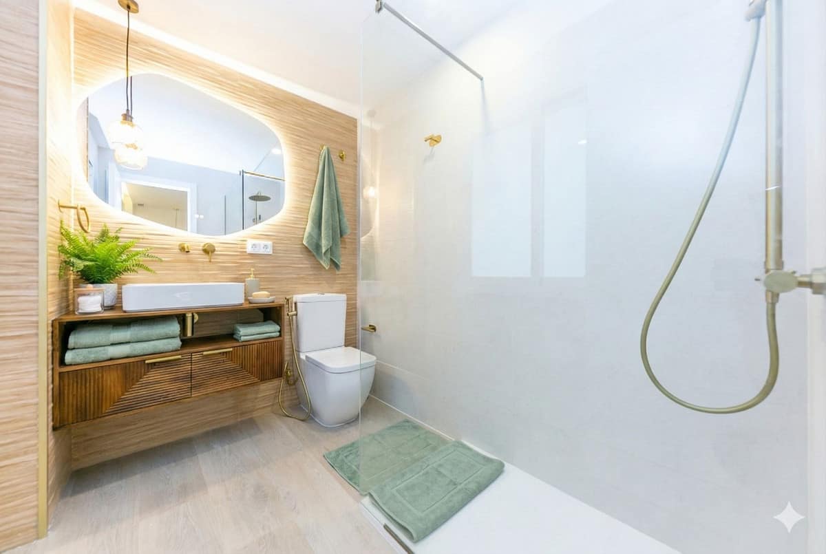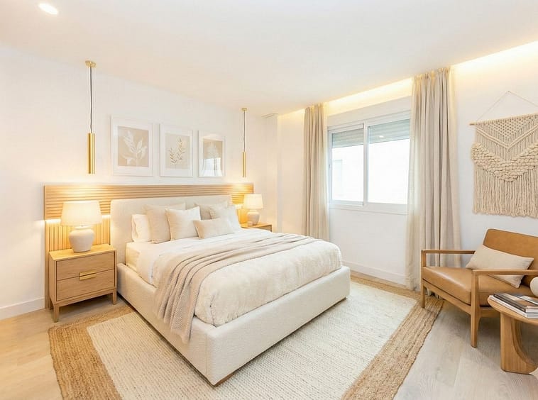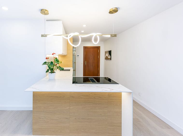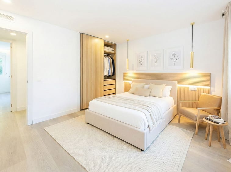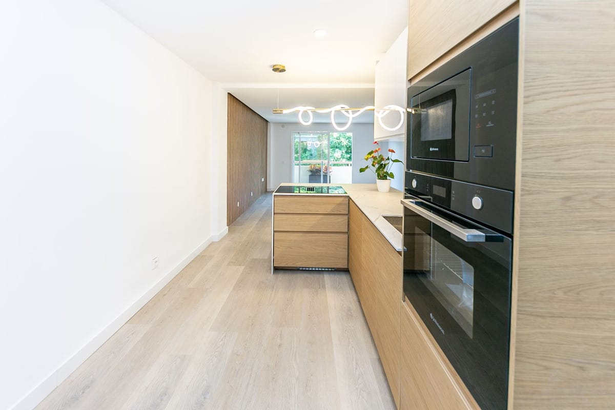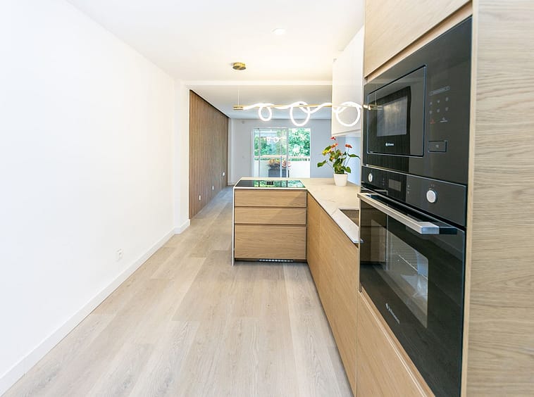 Among its features are central air conditioning, installed LED lighting (kitchen, bedrooms, and headboard), high-end laminate flooring, double-glazed windows, and built-in wardrobes finished in a warm Nordic style. The bathrooms boast a modern design and superior quality materials. An electric water heater is also included.