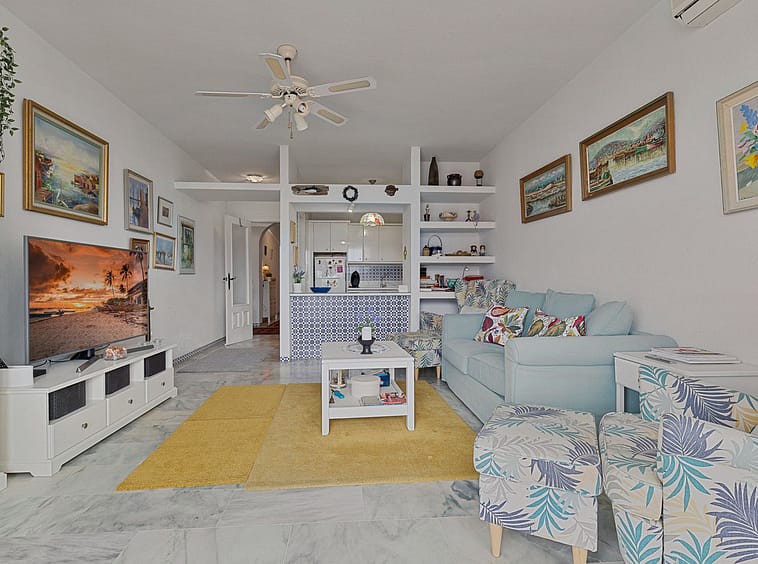 Spacious apartment second line beach in the western part of Fuengirola. The apartment has a lovely terrace facing southwest with sea views.