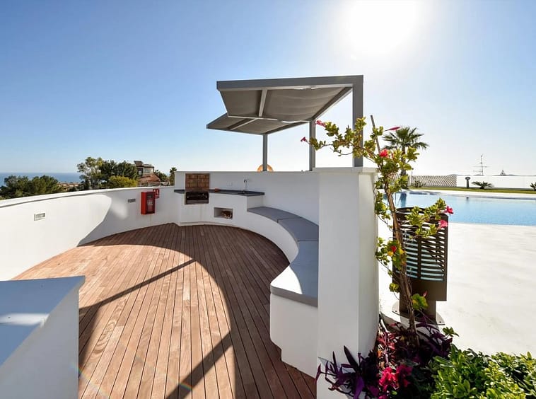 The spacious partly covered terrace faces south-west and offers fantastic views over the sea and Fuengirola coast and the Mijas mountains.