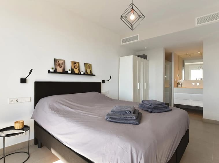 Luxury 3 bedroom apartment with stunning sea views in the modern Monte Paraiso complex in Fuengirola southern Spain. This modern apartment was completed in 2019 and stylishly decorated with modern furniture and beds with high-quality mattresses. The spacious apartment features 3 bedrooms, 2 bathrooms, a luxurious open-plan kitchen and a spacious south-west facing terrace. In the cosy living room you will find a dining table with 6 chairs two good sofas with 2 armchairs a flat-screen TV with international channels and wifi. From the southwest-oriented terrace you can enjoy the beautiful views of the sea, the coast and the mountains of Mijas. On the terrace you will find 2 sun beds and a terrace table with 6 comfortable terrace chairs where you can have breakfast or enjoy a nice dinner. Of course, there is also a sunshade for the necessary shade. Price included 2 parking spaces and 2 store rooms!!