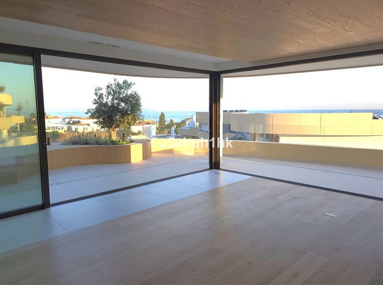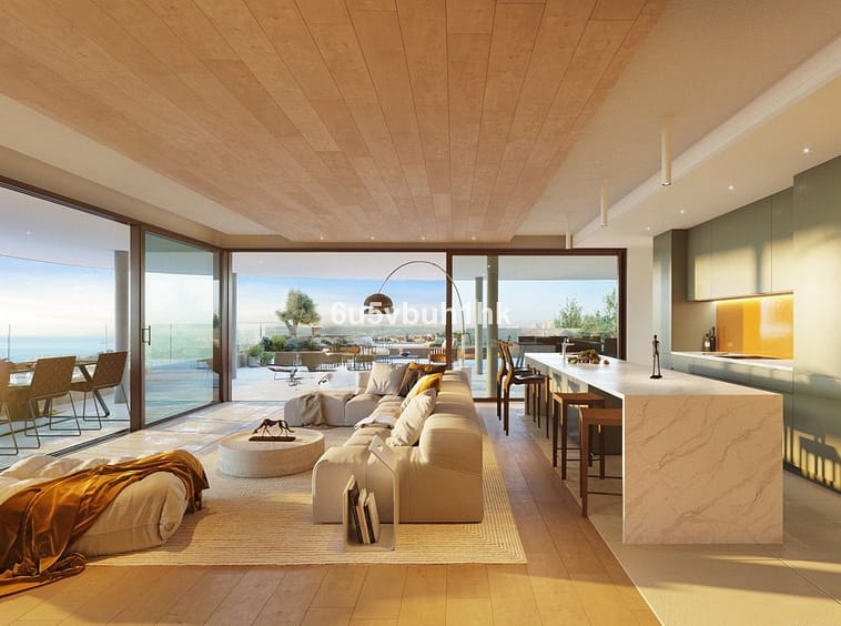 From the moment you enter, every detail evokes elegance and calm. The spacious living room connects seamlessly to the master suite through a sliding wall—open it to create one expansive, sunlit space, or close it for intimacy and rest. Floor-to-ceiling windows wrap around the L-shaped terrace, framing captivating Mediterranean views from multiple angles and flooding the interiors with natural light throughout the day.