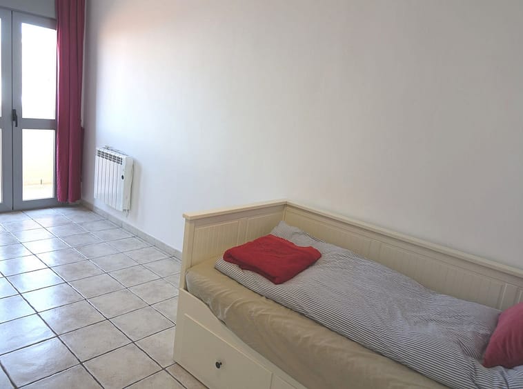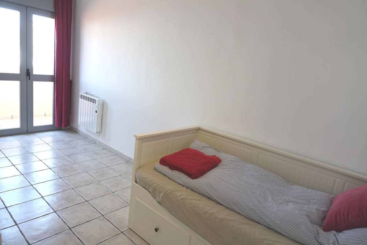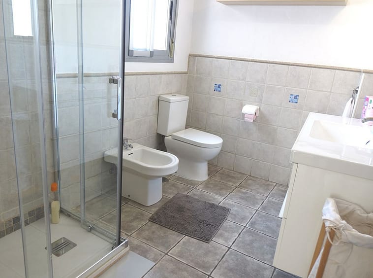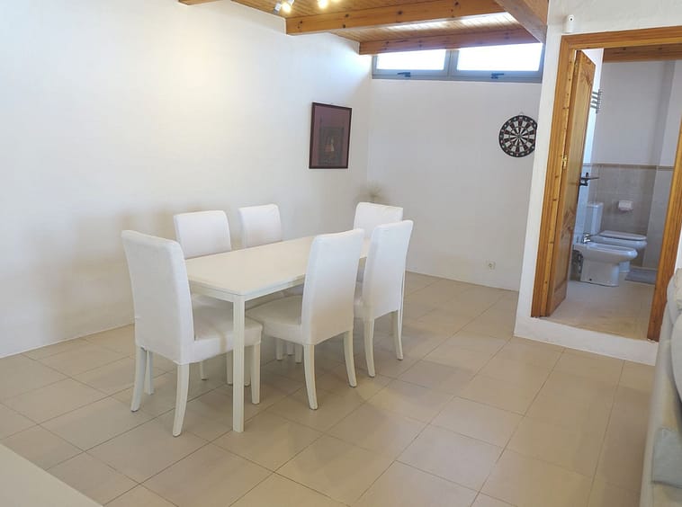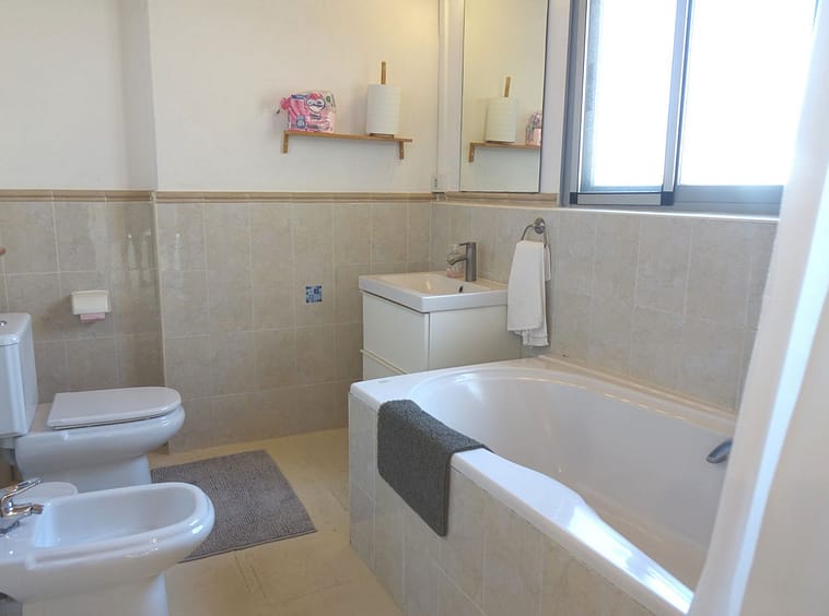 The upper level is dedicated to a bright, open-plan living space that flows seamlessly onto a sunny, uncovered terrace—ideal for al fresco dining or relaxing under the Mediterranean sky. This level also includes a second bathroom for added comfort.