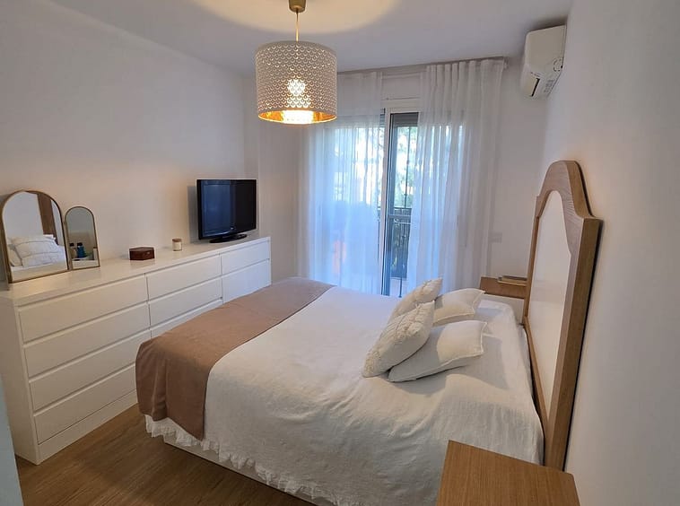 Excellent apartment just steps from the beach, fourth floor with a 36 m2 terrace overlooking the community gardens. Completely renovated, it currently has 3 bedrooms with wardrobes, 2 bathrooms, and a living-dining room with wooden floors and air conditioning. Everything is in excellent condition, and the kitchen is fully equipped. Ready to move in, ideal for holidays or permanent living. Don't hesitate to visit and arrange an appointment.