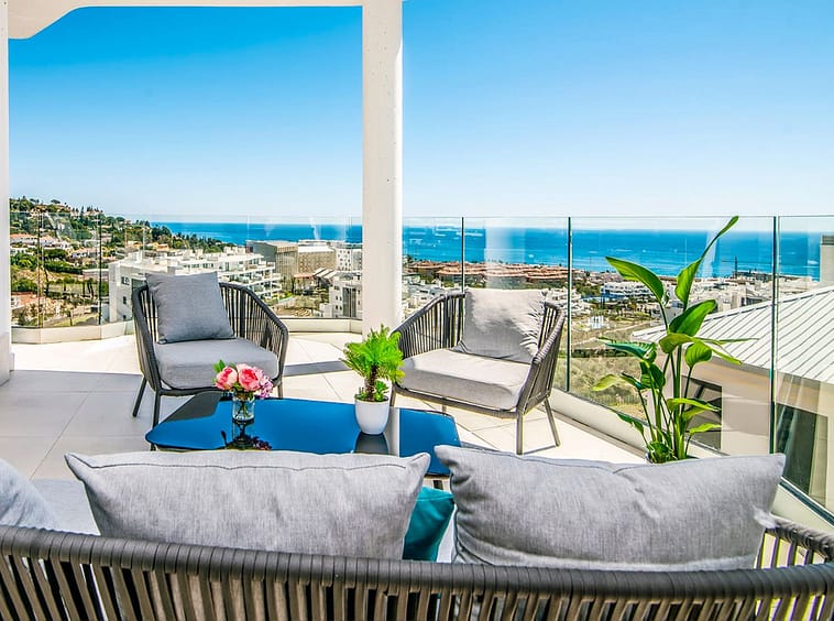 This high-end 3-bedroom, 2-bathroom apartment is positioned within the prestigious Las Lomas 2 community, offering 128 m² of refined interior space and a 26 m² south-facing terrace with panoramic sea views. Delivered in excellent condition, fully furnished, and crafted with a modern, functional layout, it provides a true turnkey living experience in the exclusive Reserva del Higuerón environment.