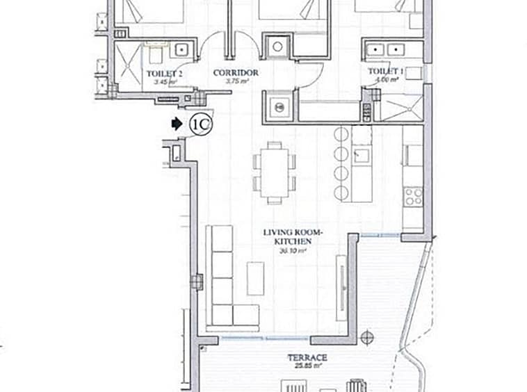2 Bedrooms, 2 Bathrooms, Built 97 m², Terrace 25 m².