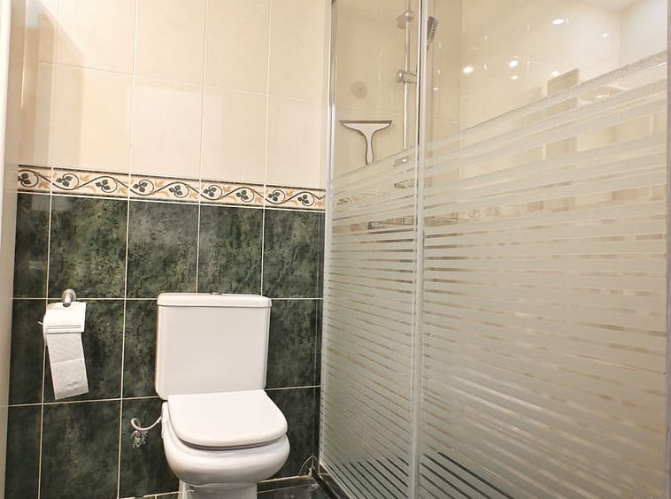 The interior is distributed into 3 bedrooms, all with fitted and lined wardrobes, 2 full bathrooms (one en suite), and an additional guest toilet, providing comfort for families or those seeking extra space.