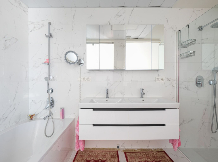 The apartment features a stylish open-plan living and kitchen area that opens onto a generous terrace, thoughtfully designed for both everyday comfort and entertaining. The existing laundry room offers the potential to be converted into a third bathroom, adding further versatility.
