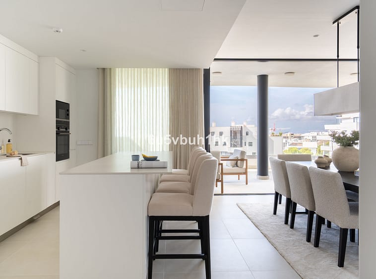 The apartment features bright, spacious interiors with a sleek contemporary design, offering 3 bedrooms, 2 bathrooms, and an impressive 32 m² terrace with panoramic sea views — perfect for relaxing and enjoying the surroundings.