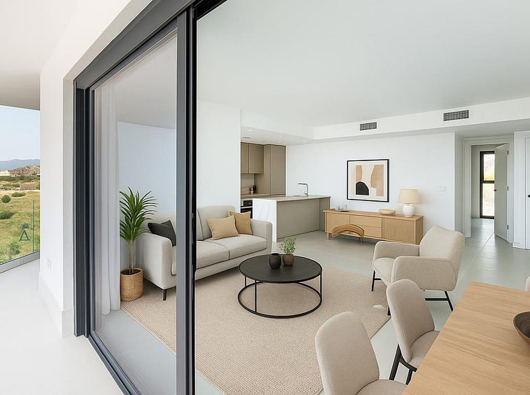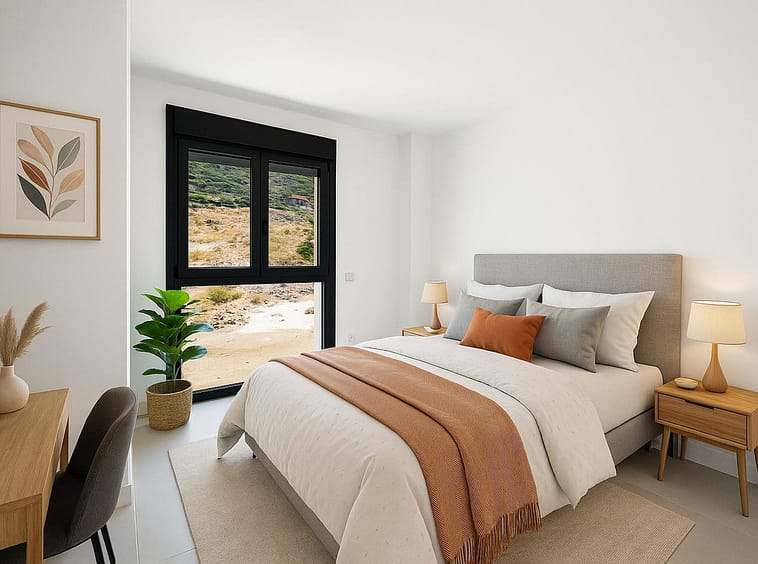 Brand-new and ready to move in! This elegant three-bedroom, two-bathroom apartment islocated on a high floor and stands out for its natural light, thanks to its corner position andexcellent southwest orientation. From the spacious 25 m² covered terrace, you can enjoysun all day long and breathtaking 180° open views of the sea and mountains. The layout isboth practical and welcoming, featuring an open-plan living and dining area connected toa fully equipped kitchen with high-quality finishes. The master bedroom includes an en-suite bathroom, while the other two bedrooms share a second full bathroom. Highlightsinclude double-glazed exterior carpentry, underfloor heating in the bathrooms, and anenergy-efficient aerothermal climate control system. Energy rating: A.