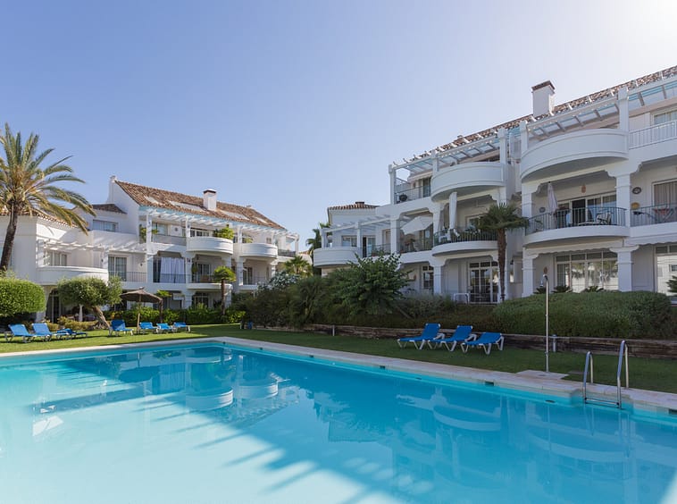 Beautiful and exclusive ground floor apartment located in one of the most sought-after residential complexes in Guadalmina Alta, offering direct access to a peaceful pool area.