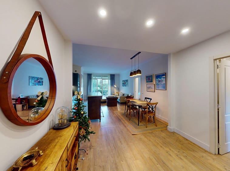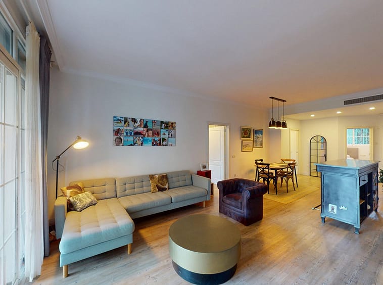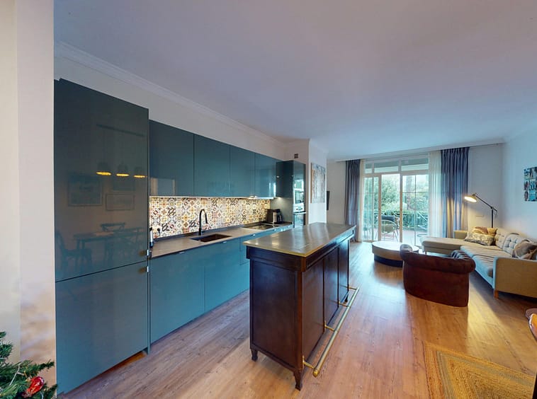 The property has been tastefully refurbished, with an optimized layout now offering three bedrooms and a modern, fully fitted open-plan kitchen seamlessly connected to the living area, creating a bright and spacious atmosphere.