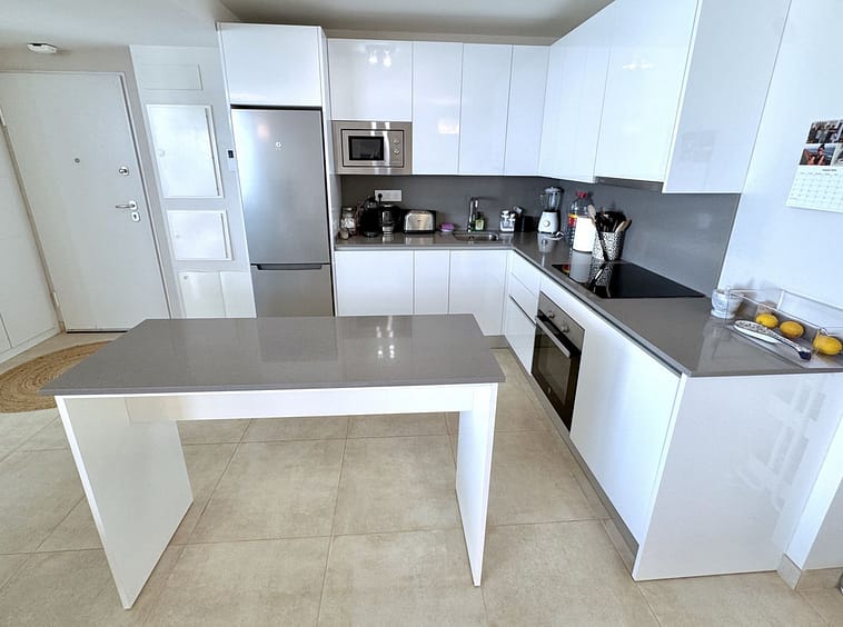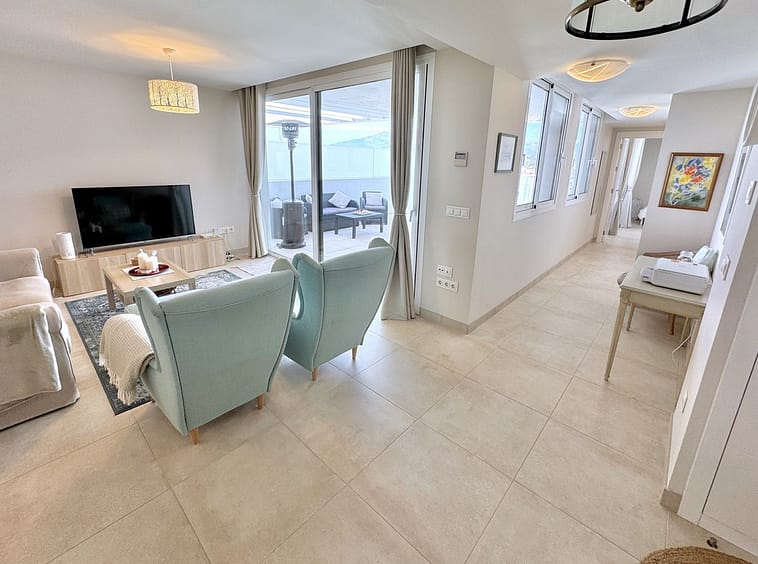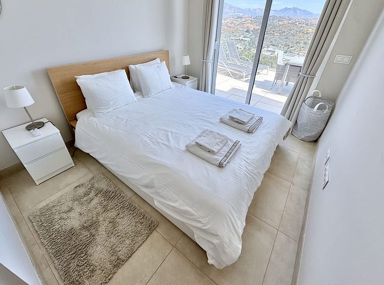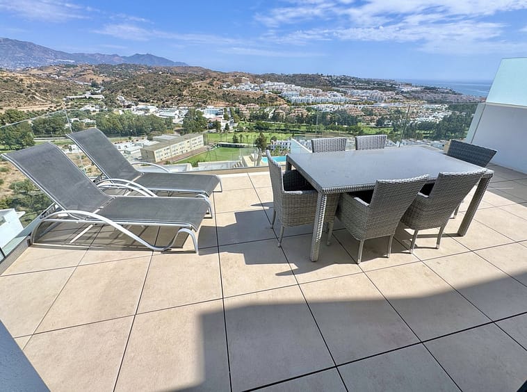 This modern luxury apartment for sale offers; spacious lounge/ dining area with large open plan modern white high-gloss fitted kitchen. With fitted oven, hob, hood, fridge freezer, microwave and dishwasher. The main living area has patio doors and 2 windows to a large (partly covered) terrace area with beautiful La Cala de Mijas sea views, ideal for both relaxing & entertaining. This beautiful apartment has 3 large double bedrooms with fitted wardrobes, two of which have patio doors to a second good size sunny terrace again with with beautiful La Cala de Mijas sea views. The Master bedroom has a walk in wardrobe & luxury en-suite shower room. There is also a 2nd family shower room. Hot & cold air-con, underfloor heating in bathrooms, private parking space and storage room. Interiors have a beautiful timeless design, with high quality finishes and feature neutral colour palettes.