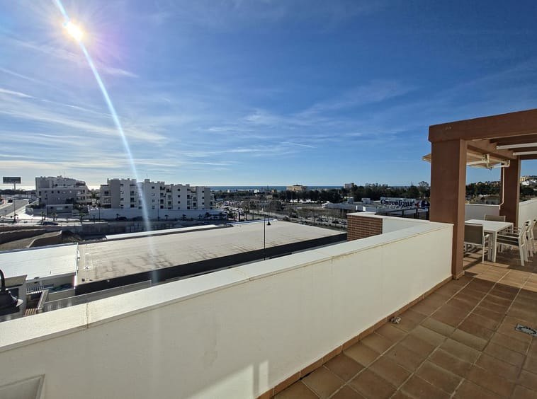 Discover elevated coastal living in this sought-after penthouse in . Boasting an impressive 120 m² of south-facing outdoor space with breathtaking panoramic sea and mountain views, this exceptional property offers the perfect blend of luxury, comfort, and Mediterranean lifestyle. With 94 m² of beautifully maintained interior space, the apartment features three spacious bedrooms and two elegant bathrooms, including a stylish en-suite. The bright and airy living area opens directly onto one of two private terraces positioned on either side of the property, allowing you to enjoy sunshine or shade throughout the day. These generous outdoor spaces create the ultimate setting for al fresco dining, sunset cocktails, or simply relaxing while soaking in the spectacular views — offering true indoor-outdoor living at its finest.