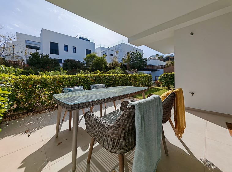 Ground Floor Apartment for sale in , Mijas Costa with 3 bedrooms, 2 bathrooms, 1 on suite bathroom and with orientation east, with communal swimming pool, private garage (1 parking spaces) and private garden. Regarding property dimensions, it has 108 m² built and 26 m² terrace. Has the following facilities amenities near, transport near, air conditioning, fully fitted kitchen, jacuzzi, sauna, satellite tv, solar panels, storage room, gym, security entrance, double glazing, security service 24h, private terrace, kitchen equipped, mountain view, indoor pool, heated pool, security shutters, internet – wi-fi, covered terrace, 24h service, electric blinds, fitted wardrobes, gated community, lift, garden view, tennis / paddle court, doorman, close to children playground, close to sea / beach, close to golf, uncovered terrace, glass doors, optional furniture, spa, handicap accessible, excellent condition, close to shops, close to town, close to schools, surveillance cameras and pets allowed.