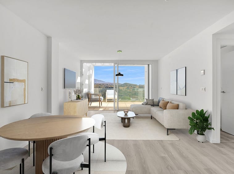 This modern 3-bedroom, 2-bathroom apartment is located in the most privileged position within one of the most know complexes within La cala de Mijas — in the front row, on the lower tier, closer to the pedestrian gate. This ensures panoramic, unobstructed sea views with no buildings in front and zero possibility of future construction blocking the scenery.
