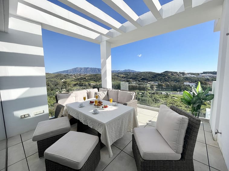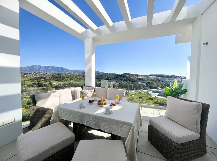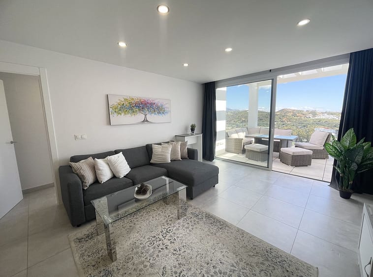 Welcome to this bright and modern corner apartment in the sought-after Las Banderas complex in La Cala de Mijas! The property features 3 bedrooms, 2 bathrooms, and a spacious terrace with stunning mountain and sea views.