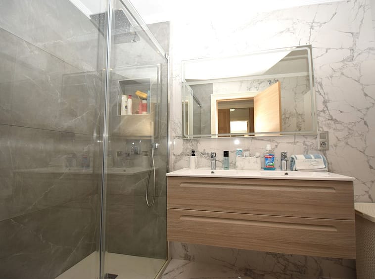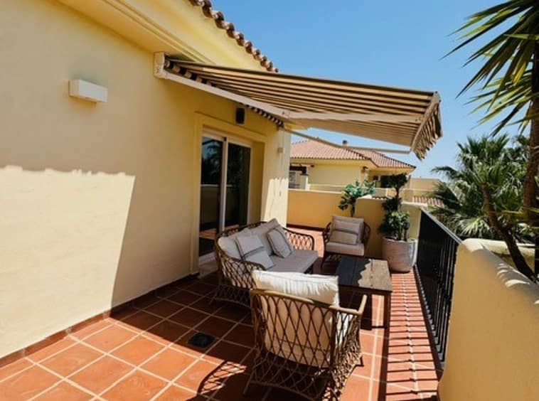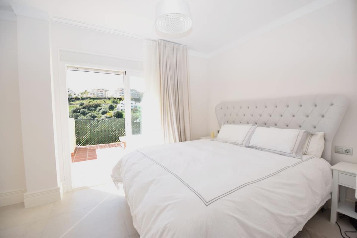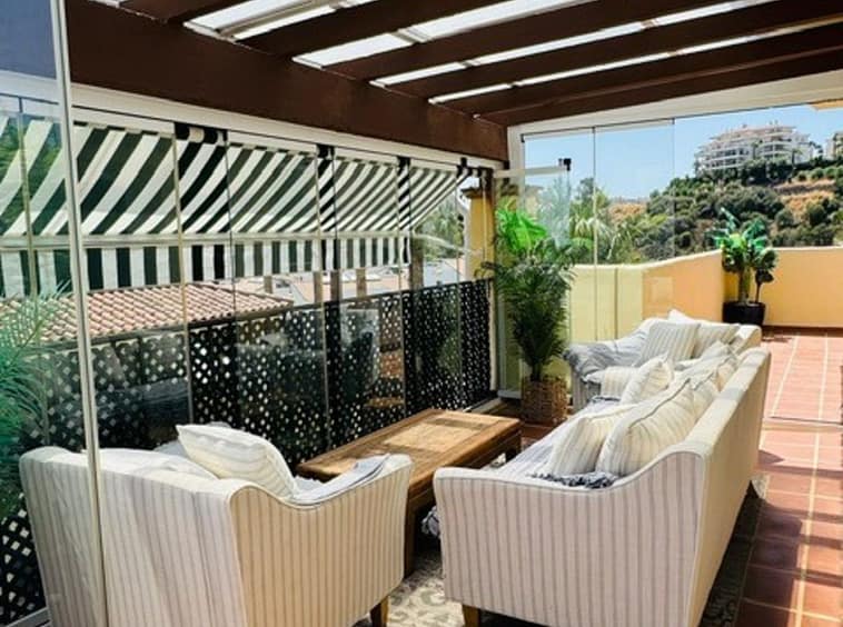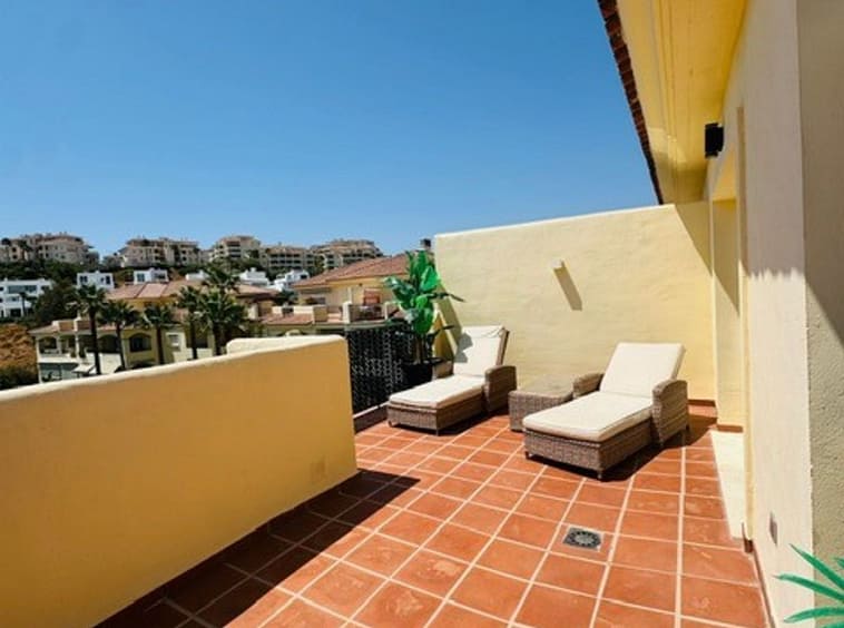 This property is the finest, completely renovated penthouse in La Cala Hills and the surrounding areas. Everything in this property has been upgraded and modernised, from the new tiled flooring to the bathrooms, kitchen, internal doors and wardrobes in all three bedrooms. This is the most quintessential "turn key" penthouse you will ever find. This spacious three bedroom, two bathroom penthouse is located in La Cala Hills, Mijas Costa. With 118m² of interior living space and a 104m² wraparound terrace (on three sides), there is always a sunny or shaded spot to enjoy throughout the day. Situated in Phase IV, the terrace offers panoramic views of the surrounding landscape, and the communal garden with swimming pool. The generous outdoor space is one of the main highlights of this property, as is the glass curtained conservatory, which you can enjoy all year round. Inside the apartment the newly renovated kitchen is now open plan into the lounge where you will find a comfortable seating area with built in fire place and TV and an adjacent dining area. Both areas have direct access to the open terrace so they are flooded with natural light and fresh air and the dining area also has direct access to the conservatory. The master bedroom has a modern and elegant en-suite shower room and there is another shower room for the occupants of bedrooms two and three. The kitchen is fully equipped and leads to a separate utility/laundry room with the washer and dryer conveniently hidden in a sleek cupboard. The property also includes a private storage room and a parking space in the underground garage and there is additional guest parking inside the community gates. A comfortable and well-located home for those looking for space, views, and outdoor living in a peaceful yet accessible area.