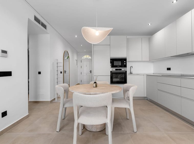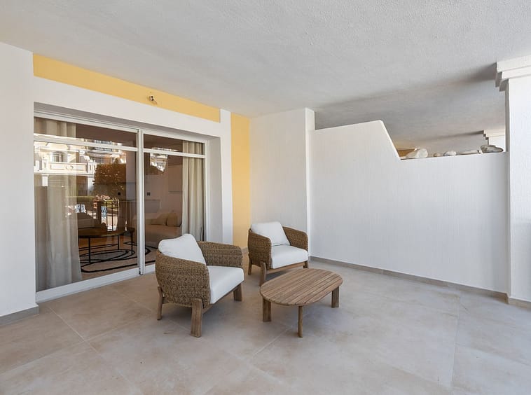 The property features three spacious bedrooms and two modern bathrooms, all completely refurbished to a high standard with a fresh, contemporary design. The open-plan living and dining area flows seamlessly onto a generous private terrace, creating the ideal indoor–outdoor lifestyle that the Costa del Sol is known for.