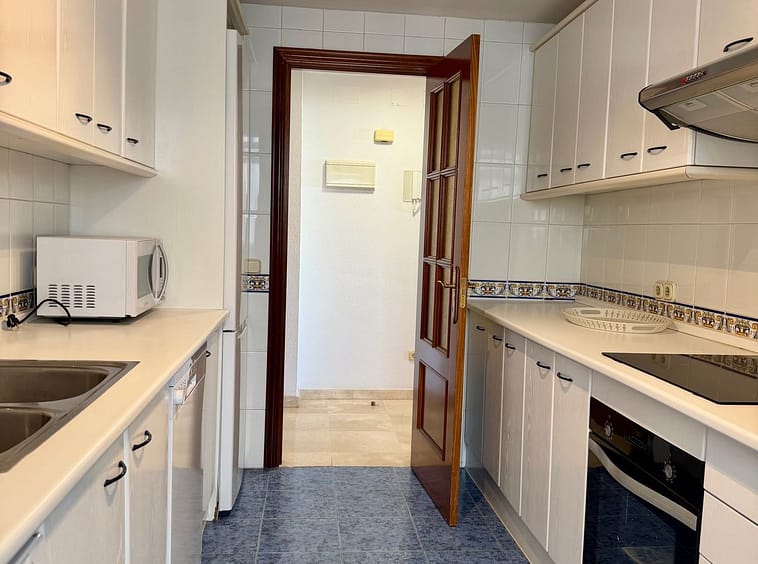 Great apartment to RENT with 3 bedrooms and 2 complete bathrooms (bath and shower), with an ideal terrace overlooking the port of Marbella, includes underground parking space, in first line beach in La Bajadilla. Perfect views to the port, the sea, and to the beach and the promenade !