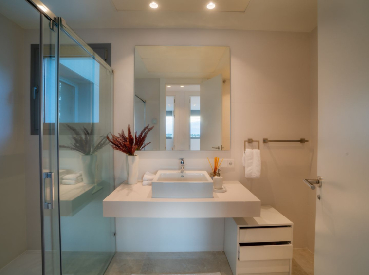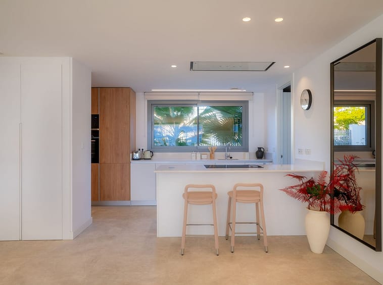 The large private terrace offers ample space for two distinct lounge or seating areas, ideal for enjoying Marbella’s climate, spectacular sunsets, and open views. The apartment is completely private, with the swimming pool conveniently located just below.
