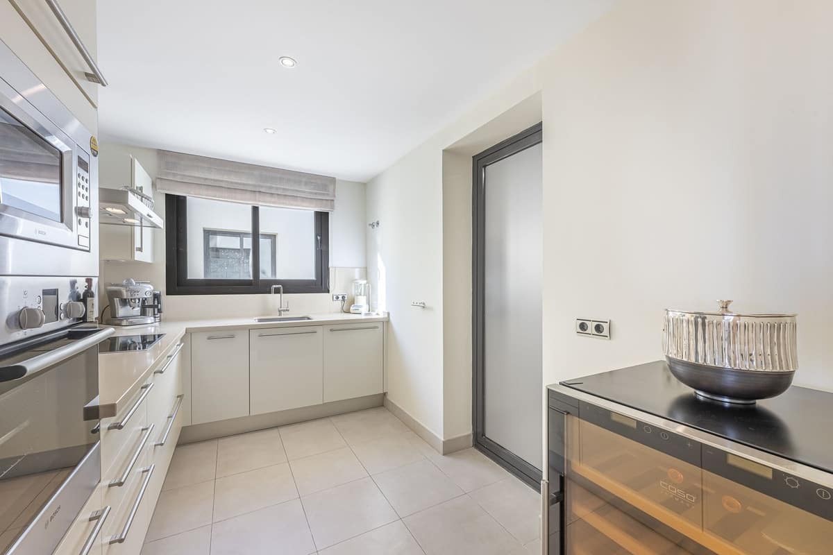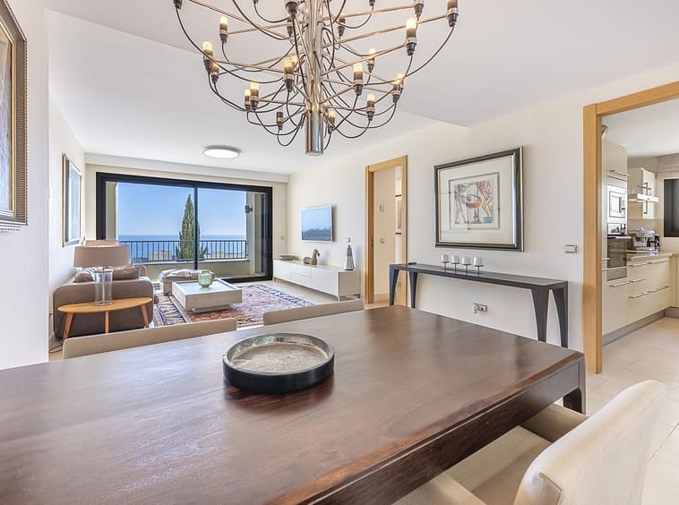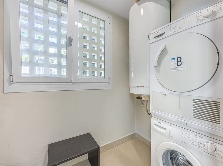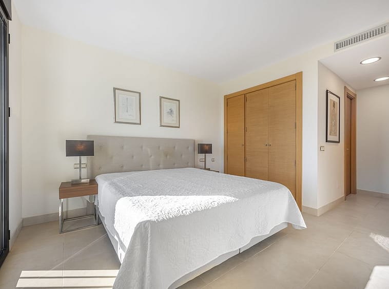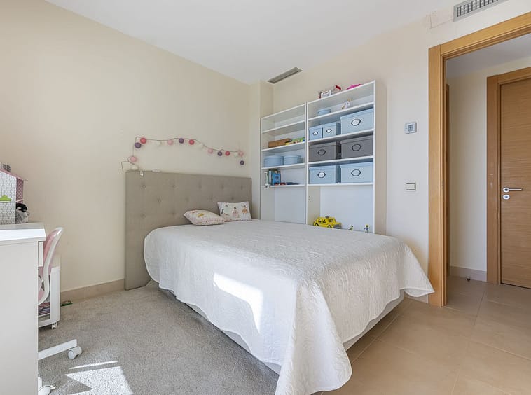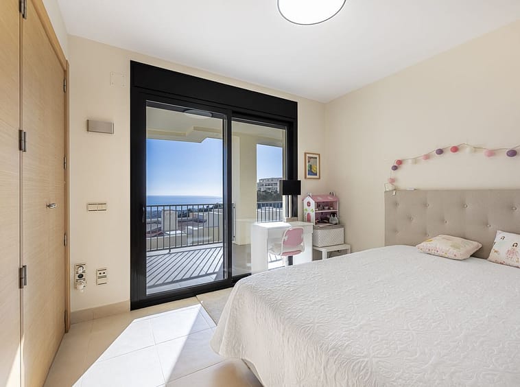 The apartment consists of three bedrooms, all with access to the terrace, a spacious living/dining room with stunning views, and a fully equipped kitchen with laundry room. Two bedrooms share a bathroom, and the master bedroom has an en-suite bathroom. The terrace is covered, allowing you to enjoy it and the exceptional views all year round.