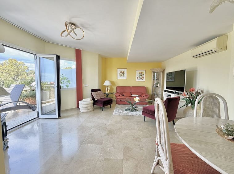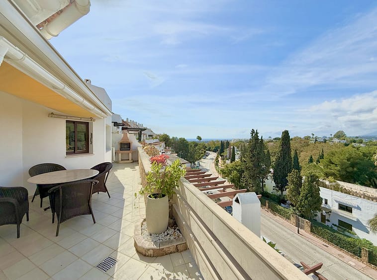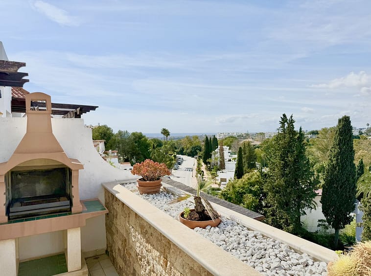 While not directly on the beach, it is just a **5-6 minute drive** from the finest beaches and the vibrant atmosphere of **Puente Romano**. In exchange, you gain something truly extraordinary: **breathtaking views from two spacious terraces**, where every morning starts with the **majestic La Concha mountain, the endless blue sea, and a stunning panorama of Gibraltar and Africa on the horizon**.